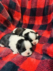 We have puppies! Currently there are 2 precious black & white sisters available! Dad is Jack and mom is Muffin. Call or message us for more details!